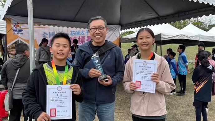 本次賽事天候陰冷且風勢強勁,對選手穩定度與心理素質造成極大考驗。同安國小楊鈞元與黃訢甯從預賽第10名出發,憑藉沉著應戰與絕佳默契,一路突破16強、8強及4強關卡,強勢晉級冠軍戰,最終奪得混雙銀牌,展現黑馬逆襲的韌性與實力。