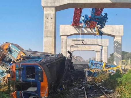 圖說:泰國日前發生架橋砸中列車事故。(資料圖)