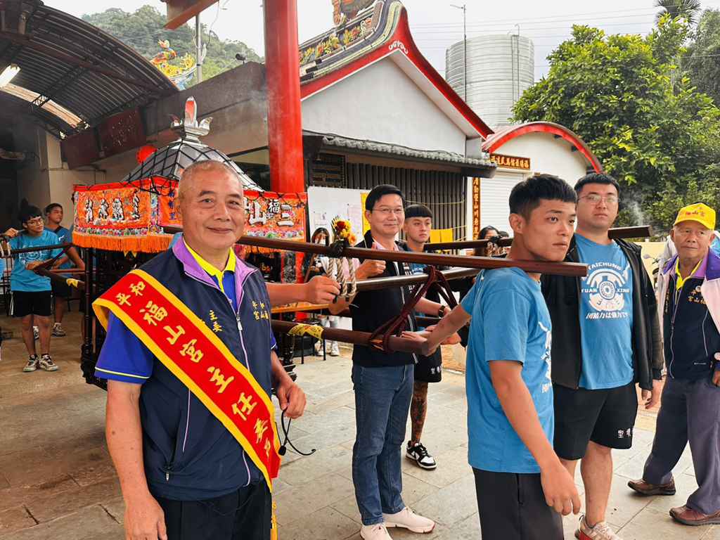 江主委表示,客家文化重視敬天、重祖、敦親睦鄰的傳統,此次福山宮舉辦進香活動,不僅展現地方宗教信仰的凝聚力,也呈現客庄居民對傳統信仰與家庭和諧的重視,福山宮長年致力於推動客家文化,讓信仰與文化共融發展,成為和平地區重要的精神信仰中心,特別代表市長盧秀燕前來祝福此行順利平安。