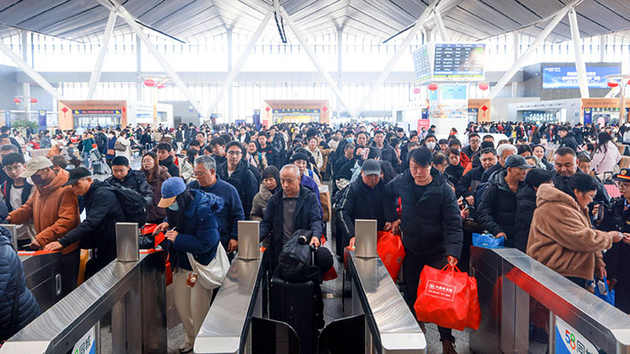 ↑圖說:2月22日,旅客在北京朝陽站乘車,當日,全國鐵路客流持續高位運行,預計發送旅客1793萬人次,計劃加開旅客列車2203列(供圖)。