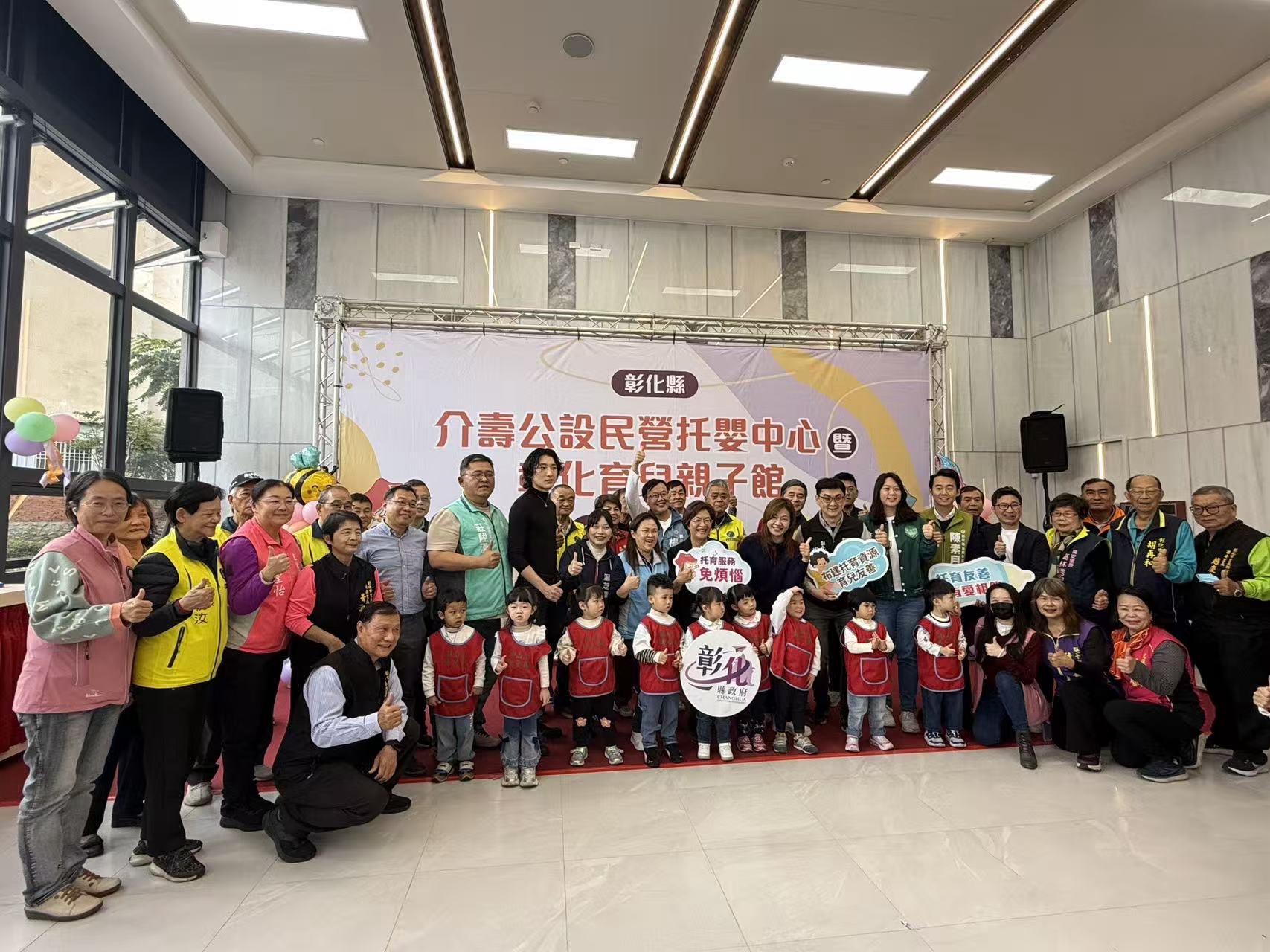 【記者林孟媛/彰化報導】彰化縣政府積極推動少子化友善育兒空間建設,今(16)日上午於彰化縣長照2.0多功能服務中心暨社福大樓2樓及6樓,啟用「介壽公設民營托嬰中心」與「彰化育兒親子館」。彰化縣長王惠美與貴賓共同揭牌,期盼透過平價、優質的托育與親子服務,減輕家長養育負擔,打造彰化成為「樂婚、願生、能養」的幸福宜居城市。