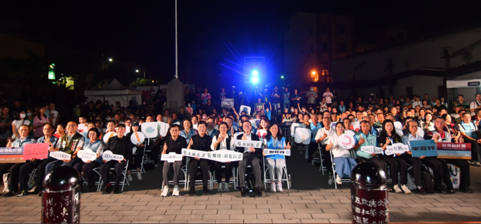 [記者 林孟媛報導]2025台灣設計展進入最後倒數,彰化縣政府今(7)日晚間於鹿港公會堂舉辦「耀啟•彰化行」光雕秀啟動儀式,由縣長王惠美、經濟部產業園區管理局長楊志清、台灣設計研究院長張基義等人共同揭幕。這場長達12分鐘的沉浸式光雕展演,將於10月10日至26日設計展期間,每週五至週日晚間6時30分至9時,每半小時在鹿港公會堂展演一次。